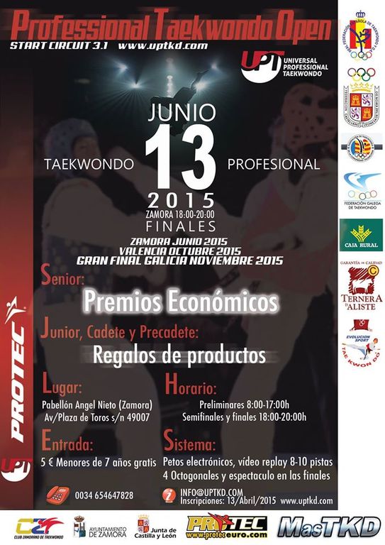 Le coup d'envoi sera donné à la mise en œuvre du 1ère Open professionnel qui se tiendra dans la ville espagnole de Zamora le 13 Juin de cette année. Plus précisément dans le Hall Angel Nieto, qui accueillera un total de neuf zones de combat dont quatre seront octogonales, les combattants seront équipés de plastrons électroniques et le système de videoreplay sera en vigueur.